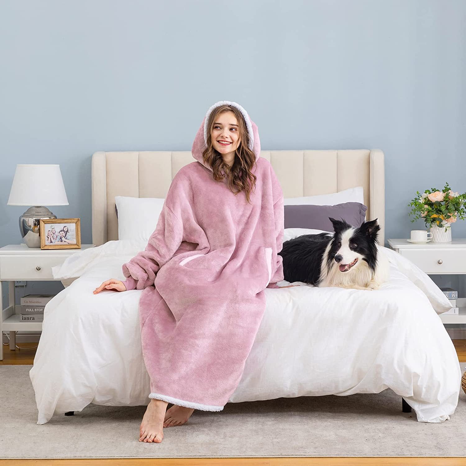 ✨ 2 u 1 dizajn: kombinuje toplotu ćebeta i udobnost duksa – praktično i toplo!