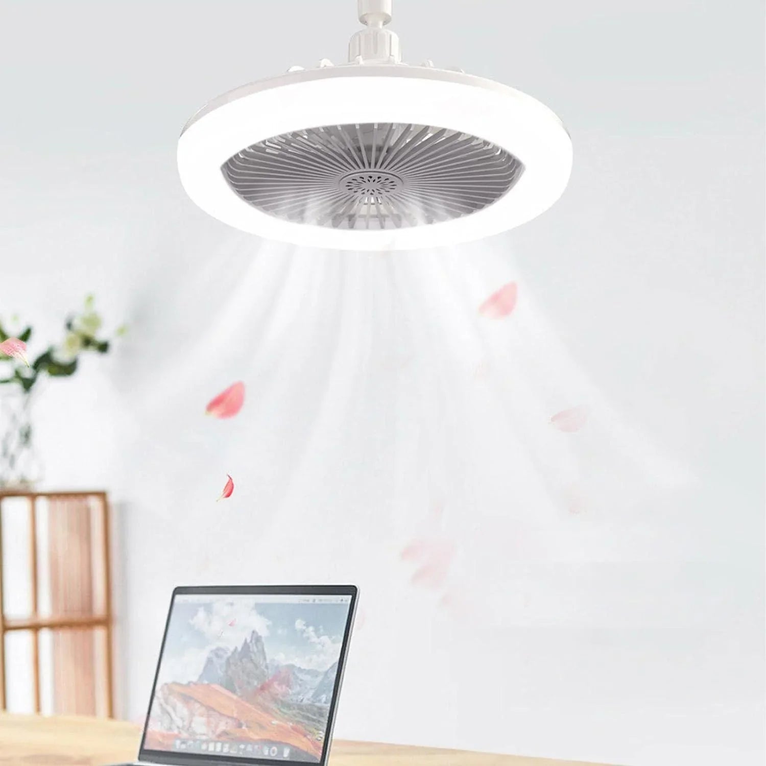 LED lampa ventilatora bez oštrica, naš nisko-profilni plafonski ventilator je zgodan za instalaciju. Jednostavno zavijte na grlo sijalice (E27) da biste zamijenili normalnu sijalicu i mali plafonski ventilator će odlično regulisati unutrašnju cirkulaciju.