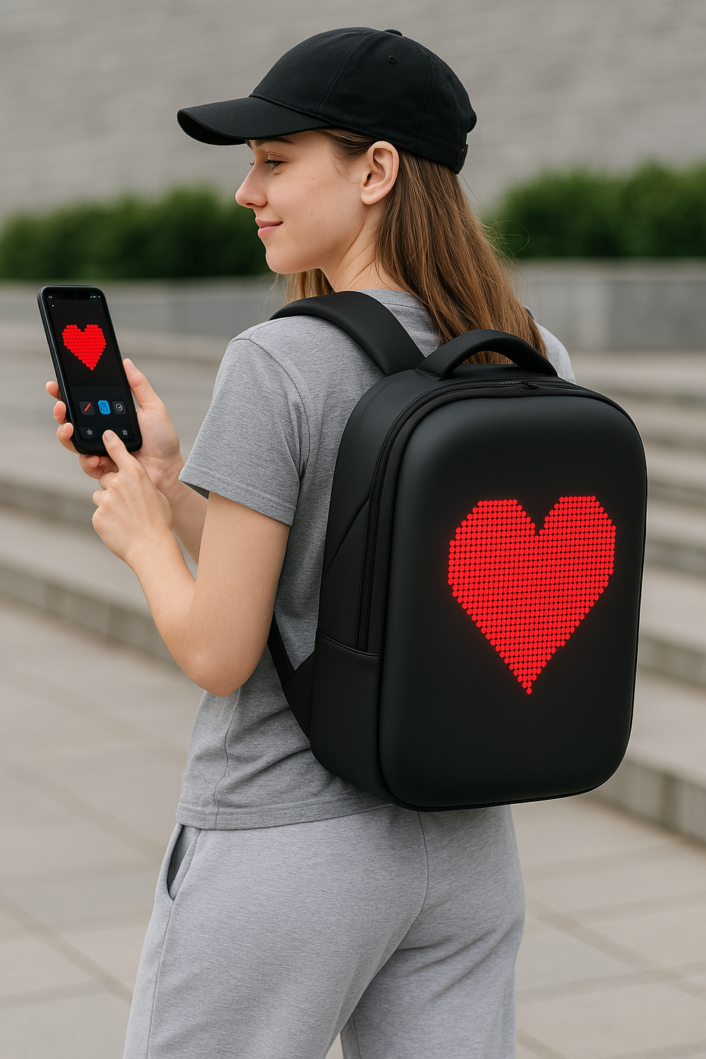 Izdvoji se iz mase uz LED Rusak – pametni ruksak sa ugrađenim 🎆 LED displejom koji ti omogućava da izraziš svoj stil, raspoloženje ili poruku kroz pokretne animacije, tekst ili slike po želji!