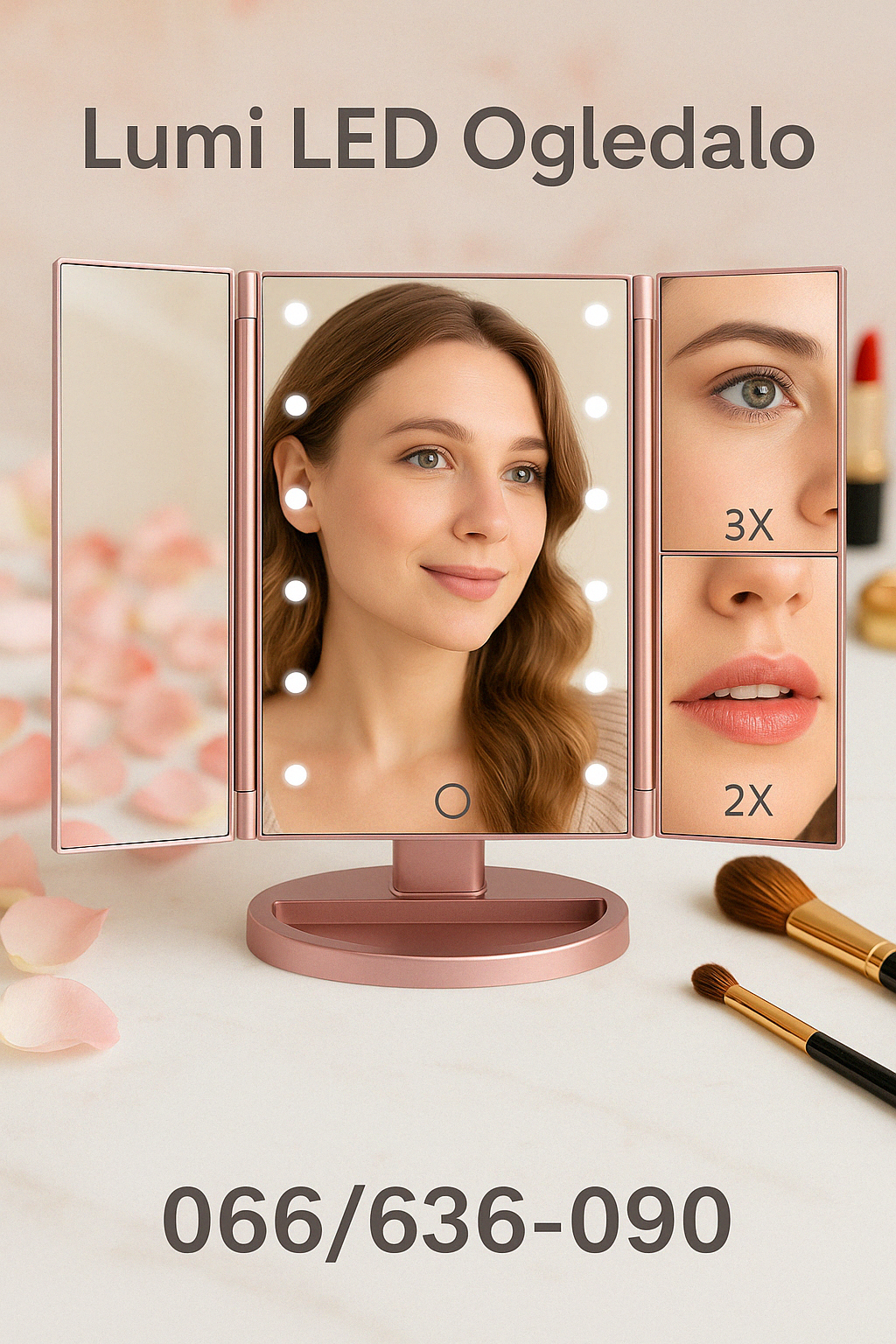 Unesi profesionalni sjaj u svoju dnevnu rutinu sa Lumi LED Ogledalom – idealnim saputnikom za savršenu šminku 💄, njegu lica 🧴 i detaljno uređivanje izgleda 👁️.