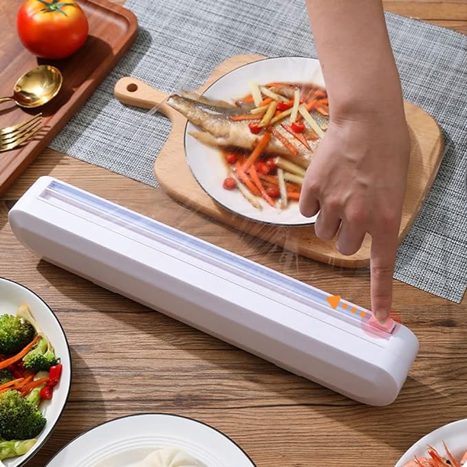 Napravljen od ABS materijala, otporan na visoke i niske temperature, izdržljiv, ekološki prihvatljiv, netoksičan i bez mirisa. Dvosmerni klizač za sečenje omogućava da izvučete željenu dužinu folije i možete je glatko iseći s leva na desno ili s desna na levo.