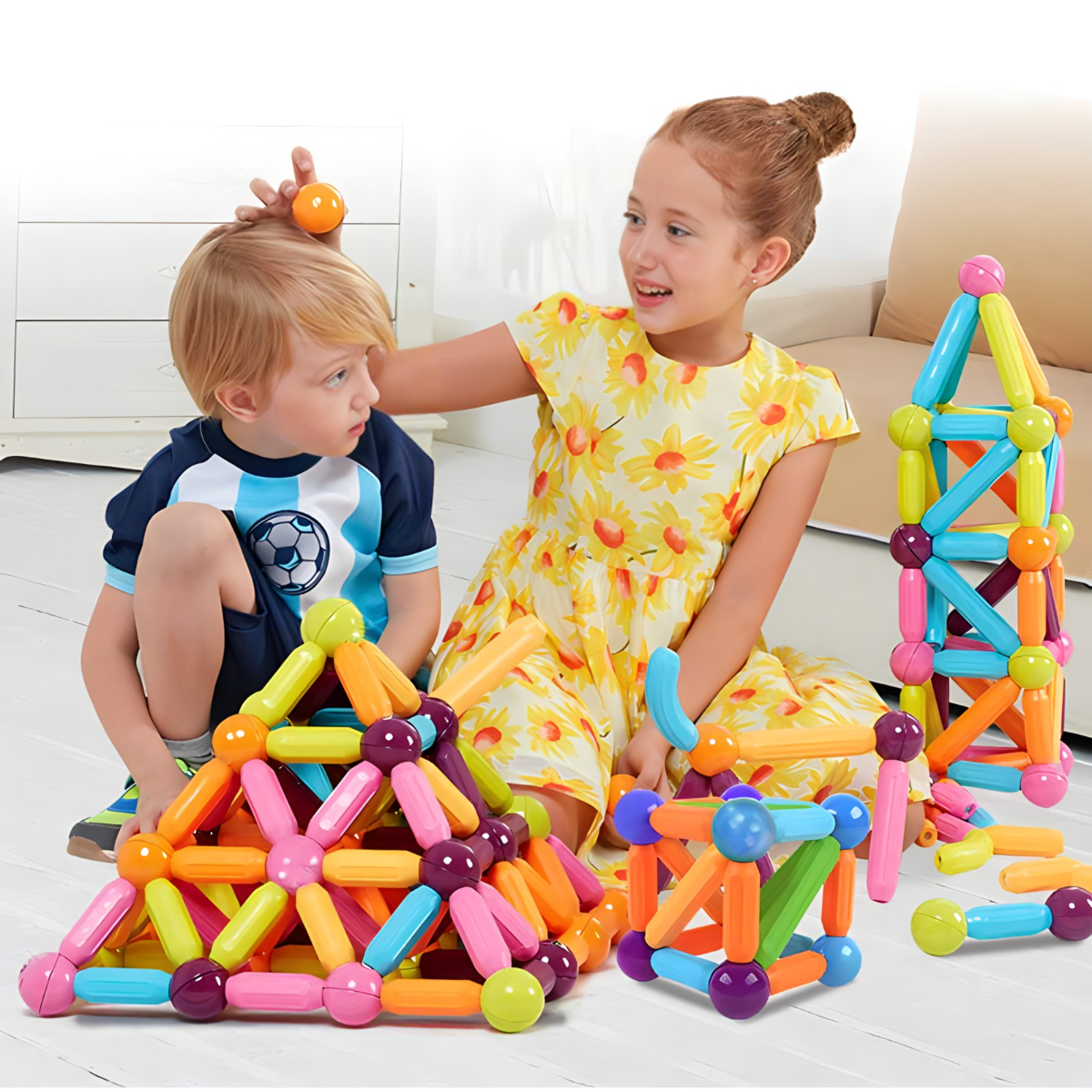 Magnetni set je idealan za samostalnu igru ili igru s prijateljima i obitelji. Djeca mogu zajedno stvarati, razmjenjivati ideje i uživati u zajedničkoj kreativnosti.