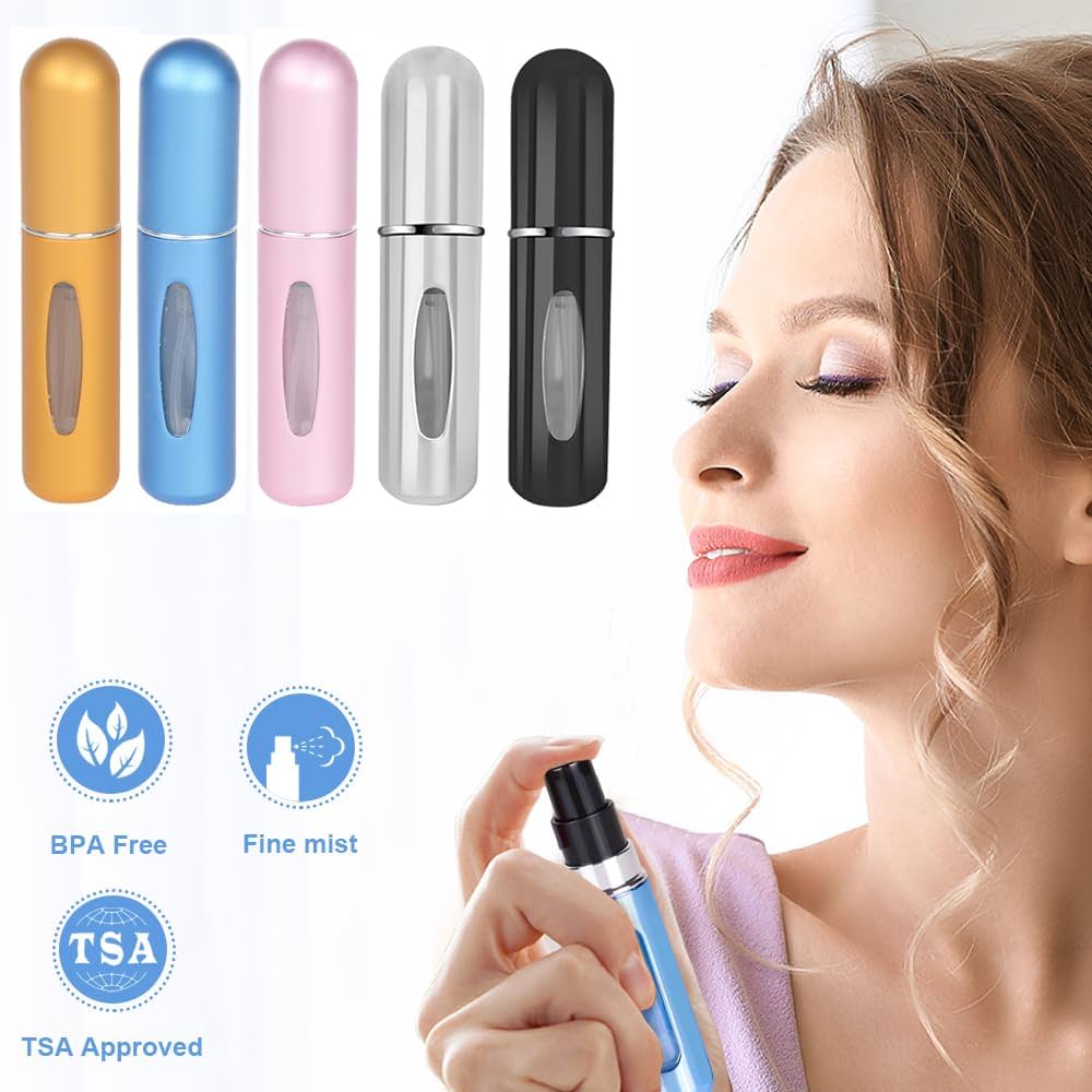 Ovaj set raspršivača parfema je bezbjedan u avionu i neće procuriti u vašu tašnu ili kofer. Neophodan je za putovanja i za muškarce i za žene, savršen za čuvanje vašeg parfema na putovanju. Daje vam svjež parfem kada ste u pokretu cio dan.