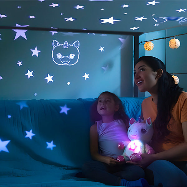 Otjerajte strah od mraka uz ovu simpatičnu plišanu igračku koju vaše dijete može grliti dok uživa u opuštajućim projekcijama.