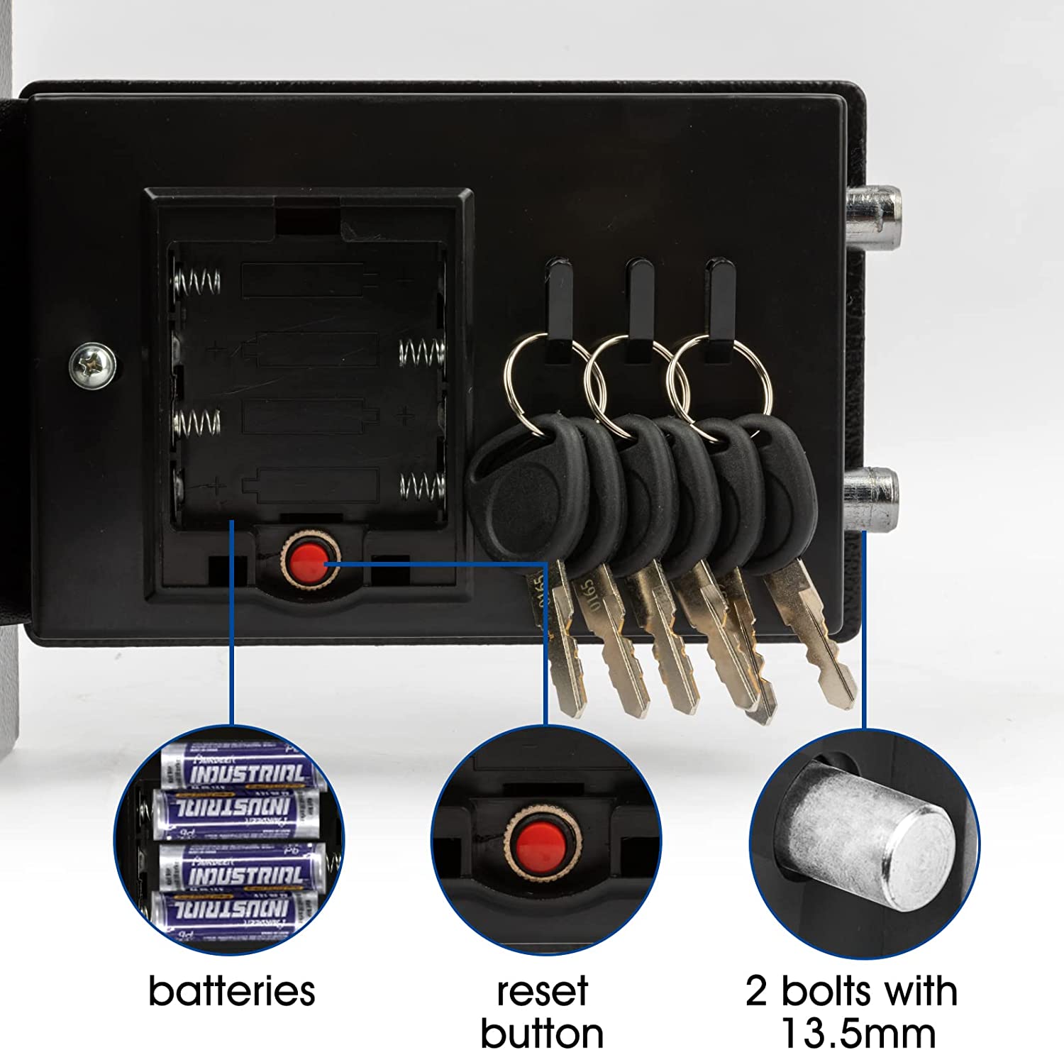 Digitalni sef ima programabilnu bravu sa tastaturom sa pozadinskim osvetljenjem, tri vijka za zaključavanje, čeličnu konstrukciju, šarku otpornu na polugu i šipku za fiksiranje u zidovima sefa kada je zatvoren.