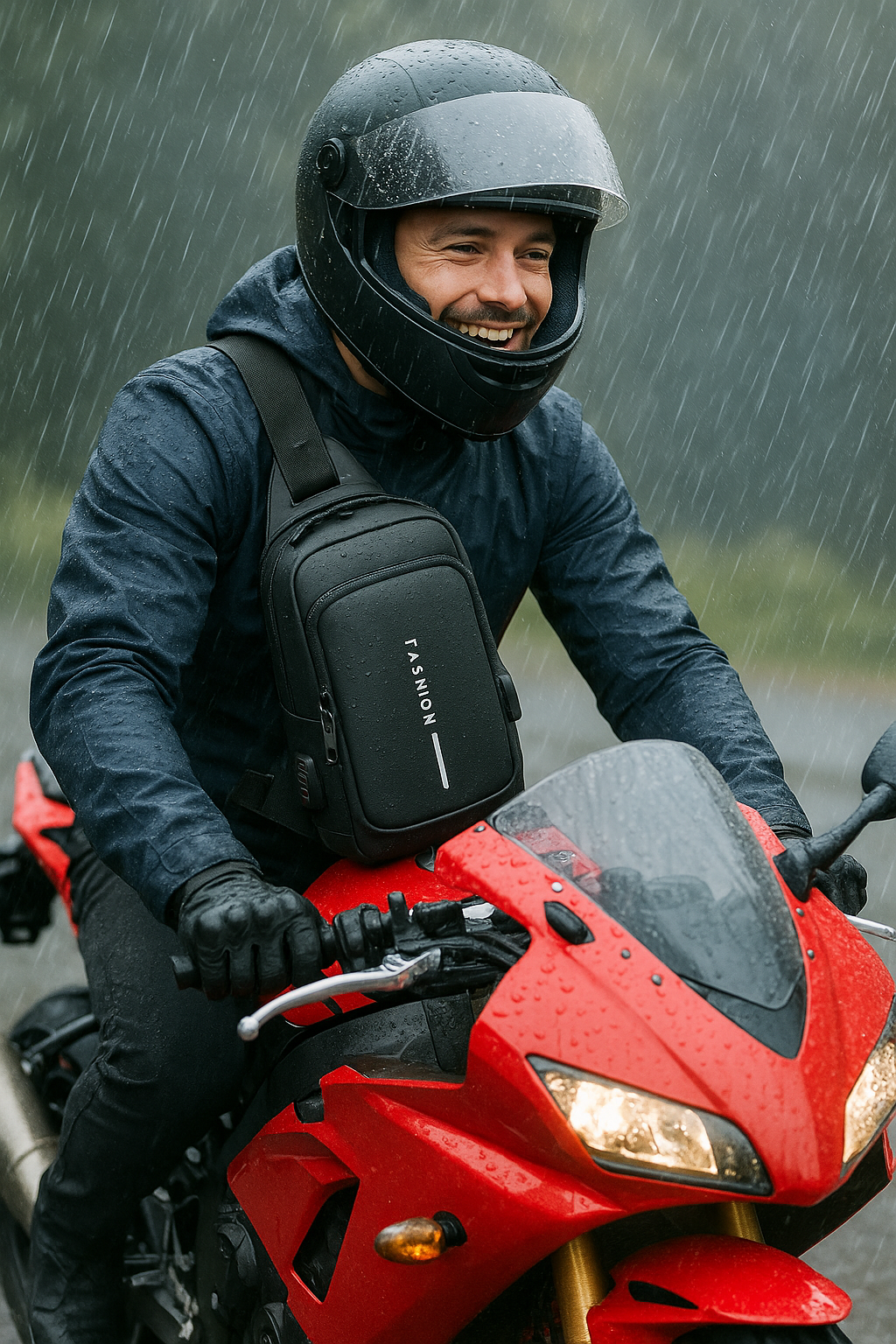 Osim što je lepa i kvalitetna, torba je izrađena od vodootpornog materijala i opremljena je kablovima tako da se može spojiti na power bank (nije uključen) preko USB izlaza sa eksternim priključcima za čuvanje punjača zaštićenog od vode.
